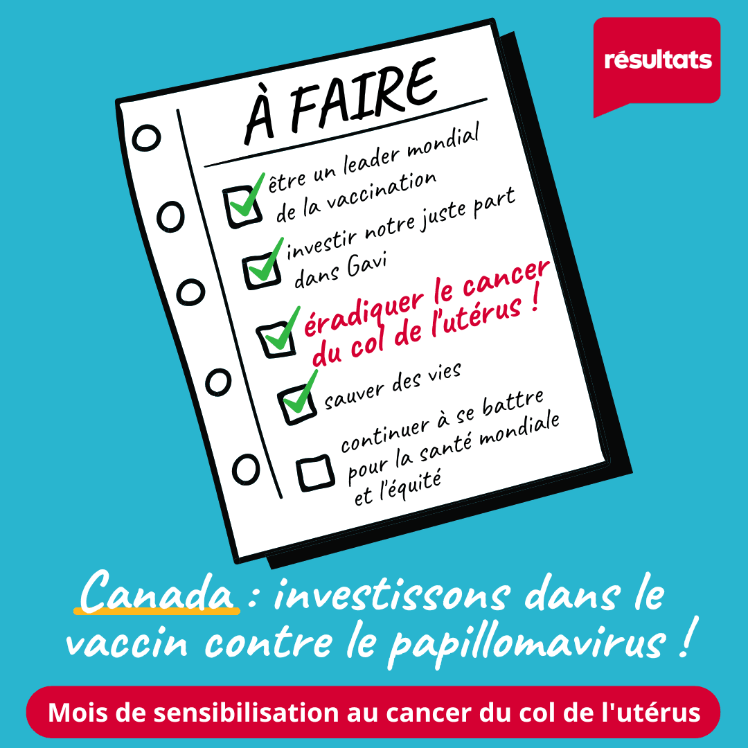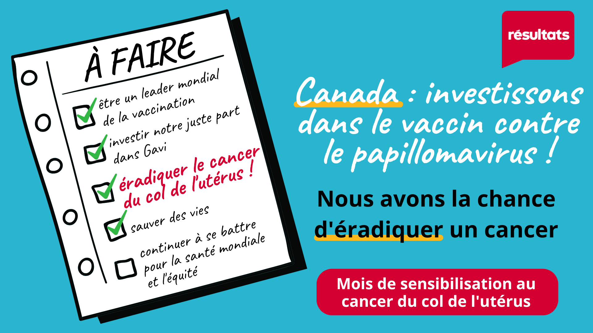 Mais nous avons besoin d'actions et de ressources pour y parvenir. En ce mois de sensibilisation au cancer du col de l'utérus, montrons au monde entier que le Canada se préoccupe de cette question.