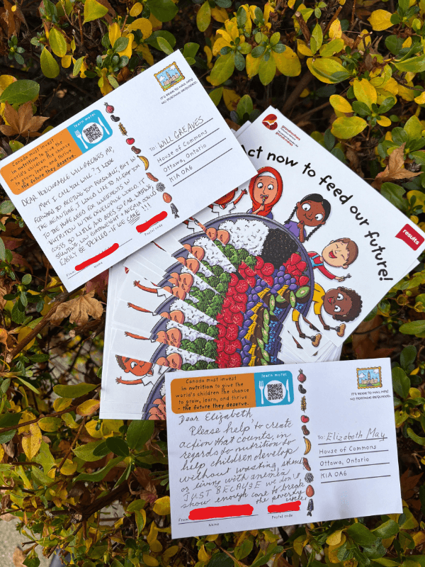 Following this dialogue, our high school advocacy group leader Bernice led us through an advocacy activity. Everyone wrote short, heartfelt messages to their Members of Parliament on postcards, with some even sharing their voices on social media, calling on Canada to make global nutrition a priority. It was a simple yet powerful way to turn inspiration into action and show that every voice matters!